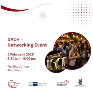 Together with the German Emirati Joint Council for Industry & Commerce (AHK) and the Swiss Business Council, we cordially invite you to the D-A-CH Business Networking Event at the Ritz Carlton Grand Canal, Abu Dhabi.